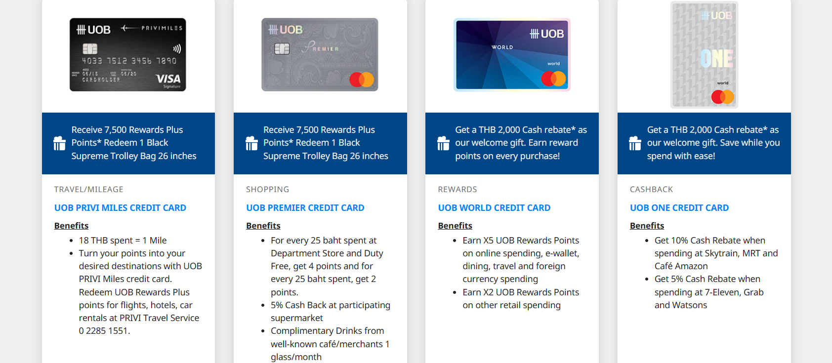 ✔ บัตรเครดิตเงินคืน (Cashback) → เหมาะกับคนที่ต้องการคืนเงินจากการใช้จ่าย เช่น UOB Credit Cards